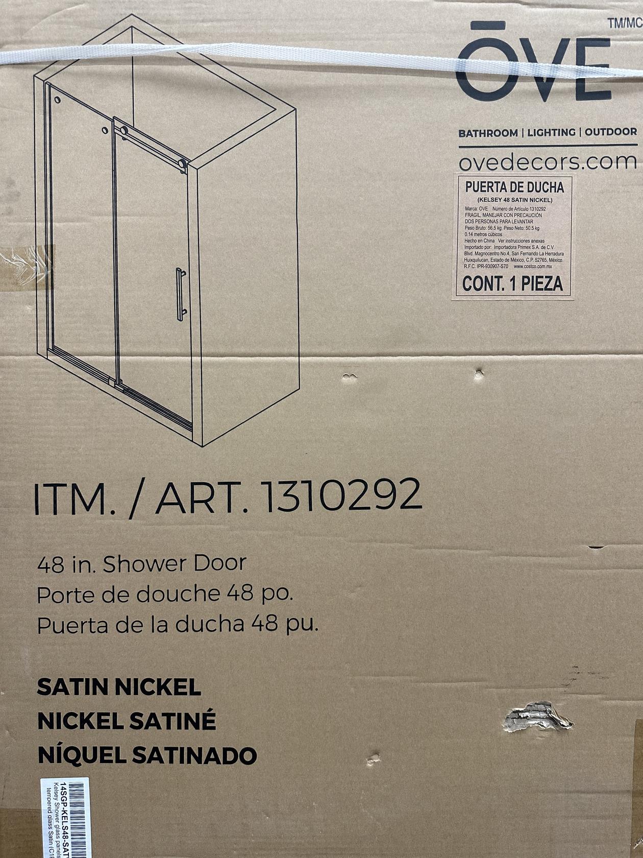 48" OVE Decors Kelsey Tempered Glass Shower Door - Satin Nickel