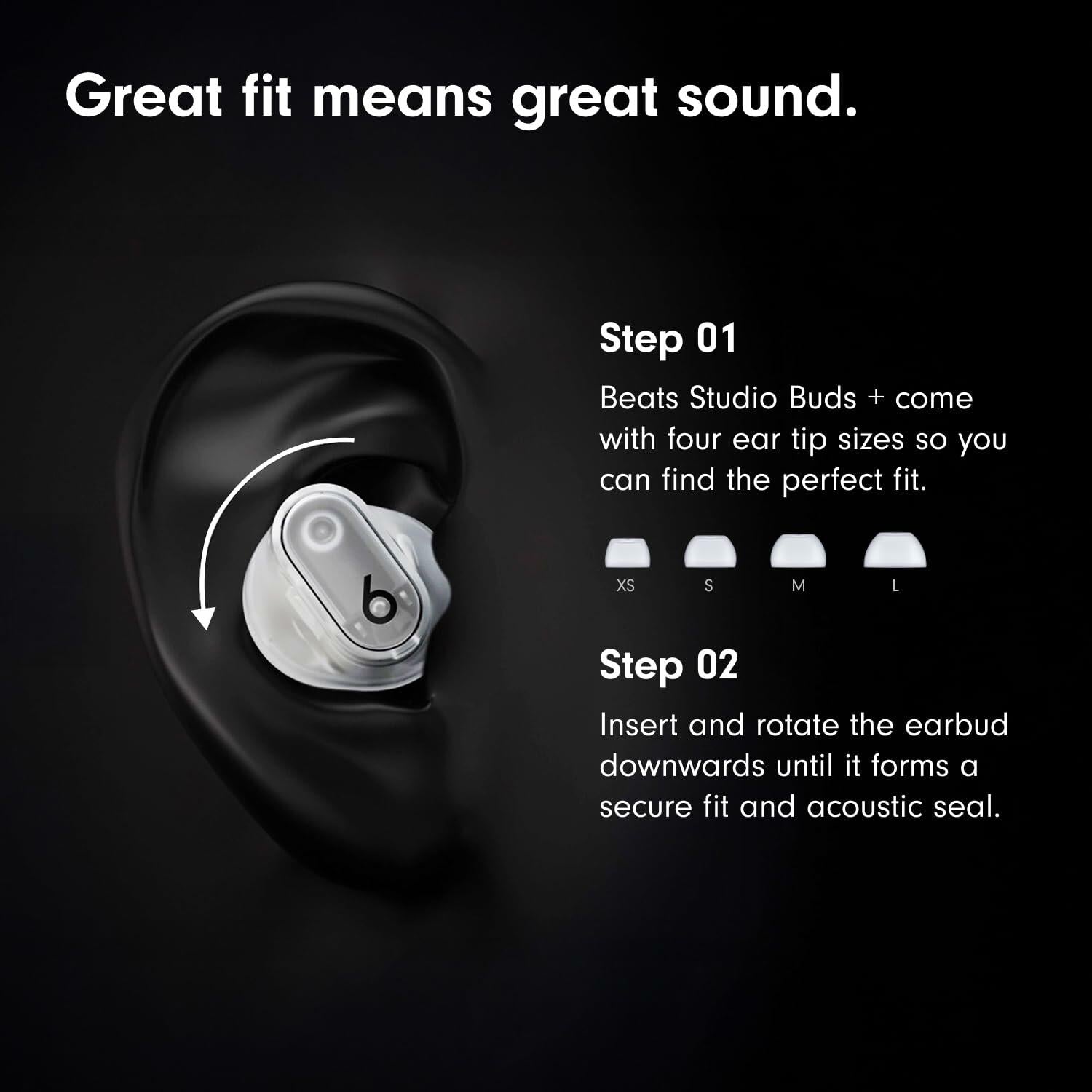 - WHATS IN THE BOX - Beats Studio Buds +, pocket-sized charging case, eartips with four size options, USB-C to USB-C charging cable, Quick Start Guide, Warranty card