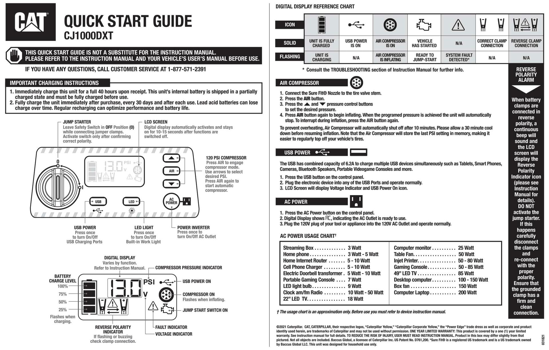 CAT CJ1000DXT 1200 Peak Amp Jump Starter and Powerstation w/200 watt Inverter