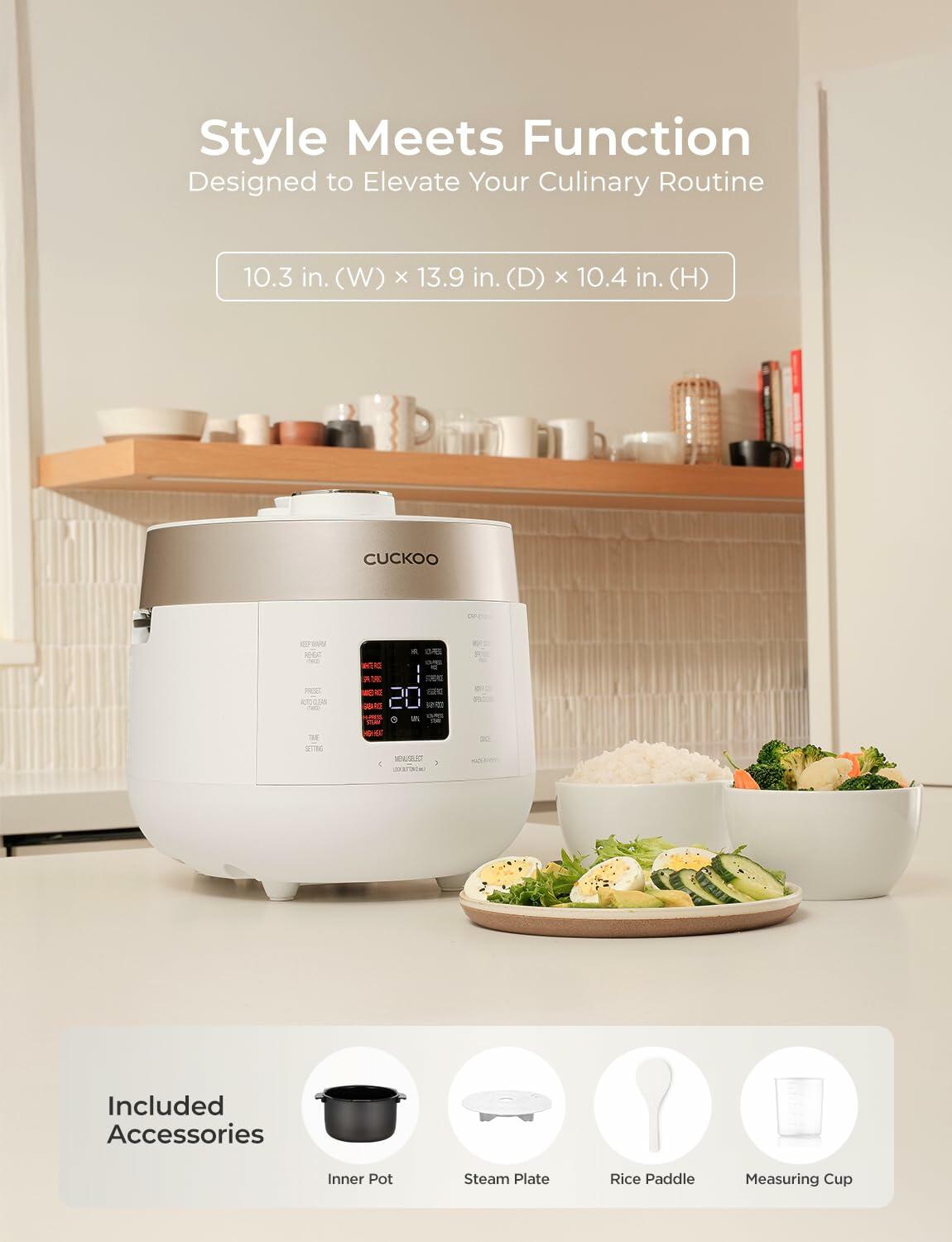 CUCKOO CRP-ST0609FW 6-Cup (Uncooked) / 12-Cup (Cooked) Twin Pressure Rice Cooker & Warmer with Nonstick Inner Pot, 16 Menu Options, 3 Voice Guide, Auto Clean (White)