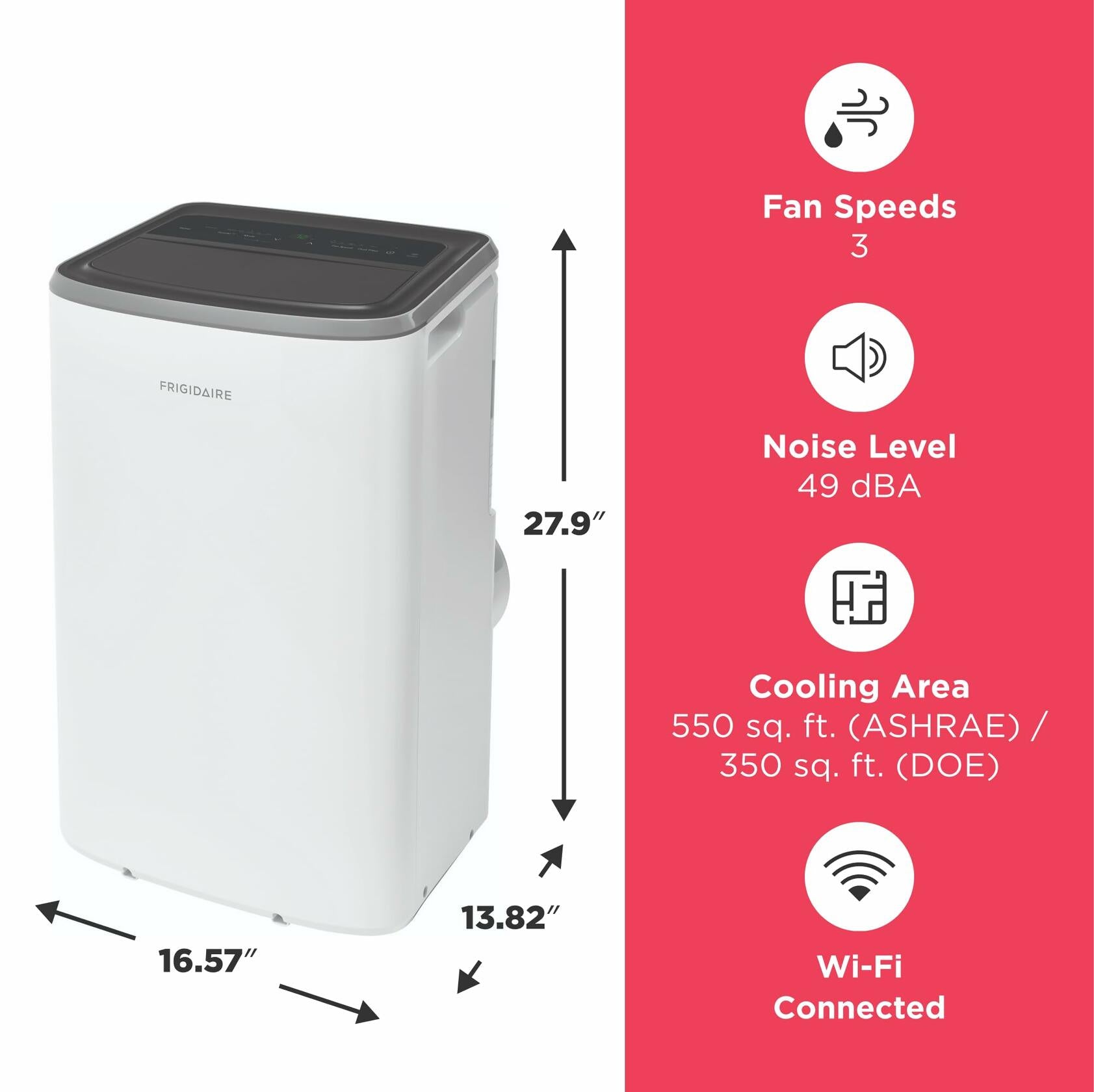 - Wi-Fi Enabled: Easily control your 3-in-1 portable air conditioner from anywhere with the Frigidaire app or connect it to your Amazon Alexa or Google Home devices for smart, hands-free cooling