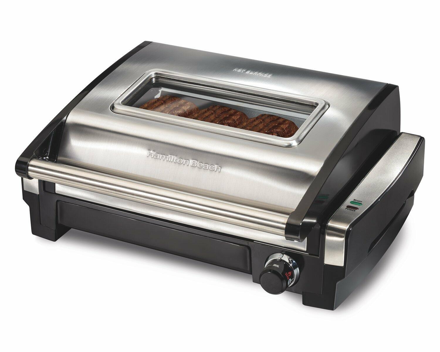 Enjoy outdoor grilled flavor anytime you like, no matter the weather. The Searing Grill's high-heat temperature locks in juices and flavor, giving your meat better taste, texture, and appearance. Unique hooded design with window helps keep in flavor to give your food that authentic outdoor grilled taste and lets you keep an eye on your food without opening up lid and releasing heat. There’s no messing with propane, charcoal, or lighter fluid, so cooking couldn’t be easier. Simply plug it in and turn the temperature dial all the way up to sear. When it reaches the high-heat searing temperature of 450 degrees, the green preheat light will glow. Now you’re ready to sear steaks, burgers, pork chops, or fish fillets to perfection. If you want to grill food that doesn’t need to sear first, the Searing Grill has an adjustable temperature dial for lower heat.Share