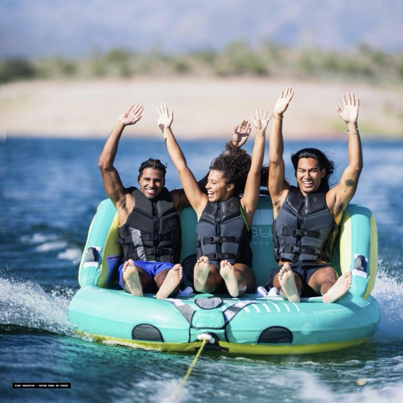 With multiple towing/riding options, the High Tide lets you choose your ride. Towing forwards in the couch position is great for all ages. In reverse or “chariot” position, it’s just your arm strength keeping you from sliding out the back and across the water as you bounce through the wakes and glide on a long whip.
