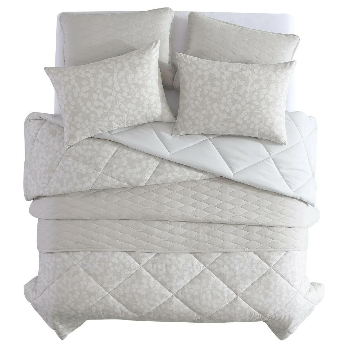 - Comforter Set Includes: 1 Comforter, 2 Shams, 1 Quilted Coverlet, 2 Quilted Shams