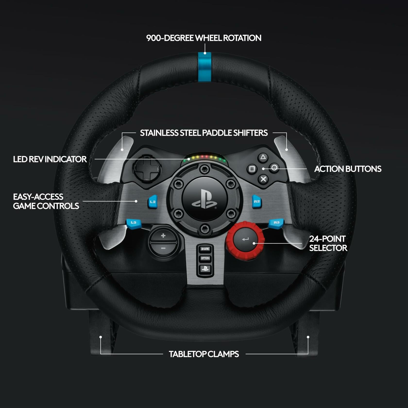 Logitech G29 Driving Force Racing Wheel and Floor Pedals, Real Force Feedback, Stainless Steel Paddle Shifters, Leather Steering Wheel Cover for PS5, PS4, PC, Mac - Black