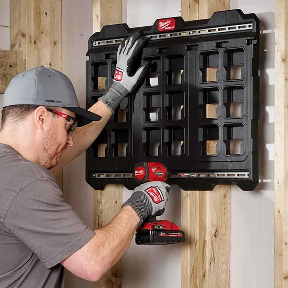 The Milwaukee PACKOUT Large Wall Plate features quick-alignment tabs to make installing rows and columns of multiple wall plates easier. This Large Wall Plate is constructed with metal-reinforced mounting tracks and impact-resistant polymers that ensure secure mounting in the shop, transit, and site environments. The Large Wall Plate has a 150lb weight capacity when mounted in the shop, and a 75lb when mounted in vehicles. As part of the PACKOUT Modular Storage System, the PACKOUT Large Wall Plate allows you to customize your storage system and keep your storage solutions organized. Milwaukee PACKOUT is the industry's most versatile and durable modular storage system.