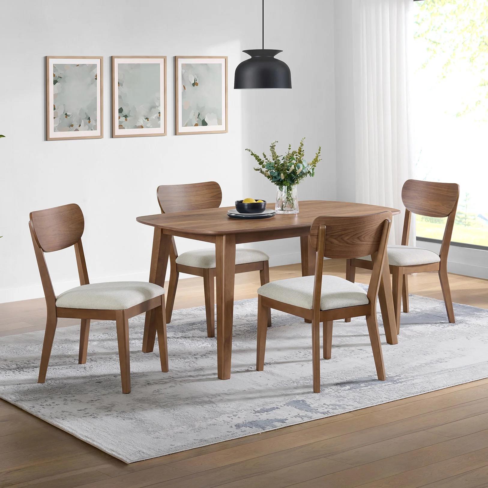 - Beautiful and practical. The Point Reyes 5-piece dining set from Pike & Main showcases simplicity with natural variation. Constructed of sturdy Beech wood and gorgeous Walnut veneer, the dining set features a streamlined Mid-century silhouette and comfortable upholstered cushions. Built to last and responsibly made with 100% FSC-certified wood.