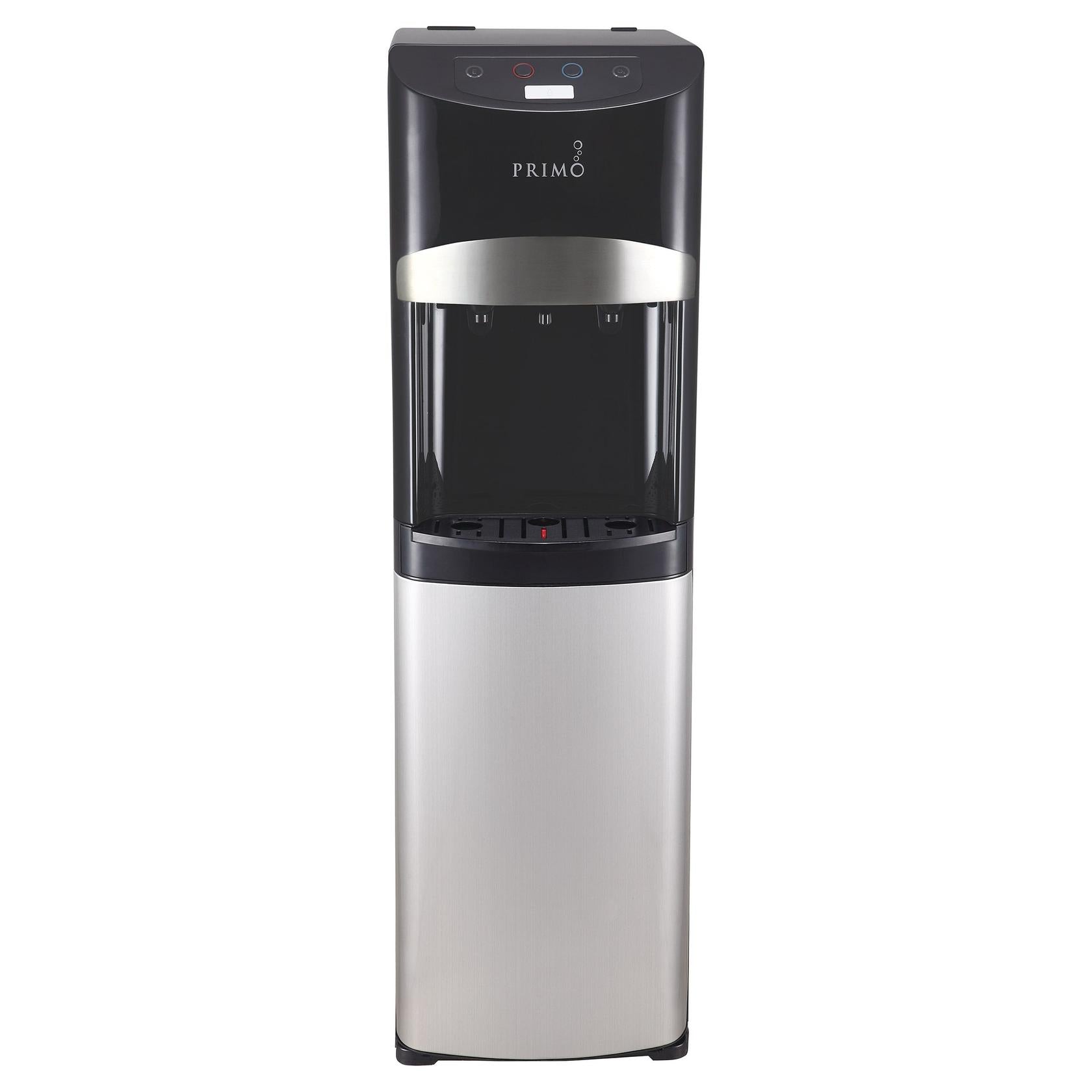 The Primo Electronic Control Black and Stainless Steel Bottom Load Water Cooler (Model 601234) combines sleek design with automatic self-sanitization for convenient access to ice-cold or piping hot water. This bottom loading water dispenser features electronic controls and requires no plumbing or installation, simply load a 5-gallon bottle and start hydrating.