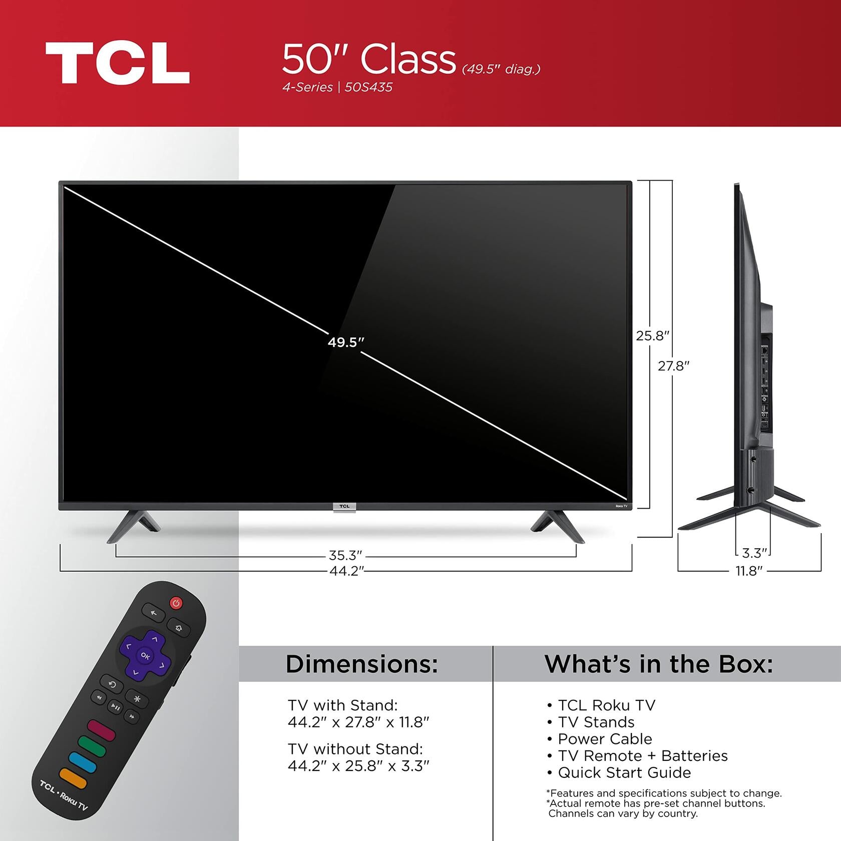 TCL 50-inch Class 4-Series 4K UHD Smart Roku LED TV - 50S435, 2021 Model