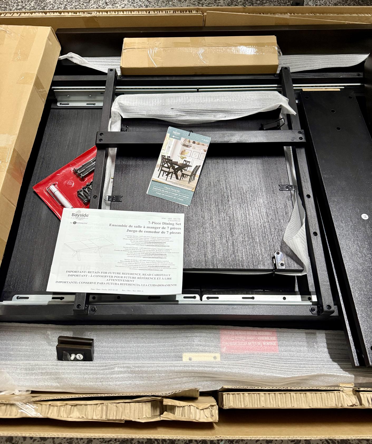 - Protective Floor GlidesModern farmhouse defines the Bayside Furnishings Westen 7-Piece Dining Set. Warm and inviting conveys its character, crafted with clean lines and the classic farmhouse x-base design. The Westen 7-piece Dining Set comfortably seats six at the striking 80-inch dining table. An integrated self-storing, butterfly leaf saves space for more intimate gatherings. Constructed of rubberwood and poplar solids that showcase the natural beauty of the table’s gently wire-brushed oak veneers.